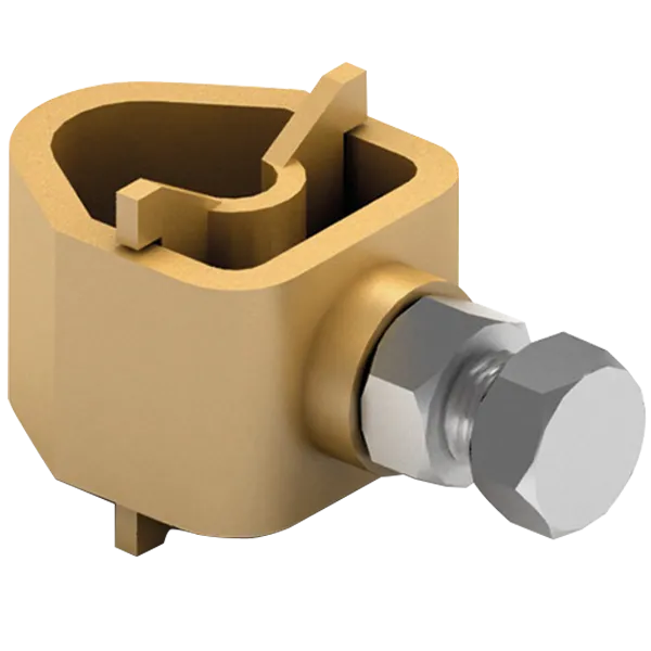 Raccord multiple en laiton pour union de câble (ø8 – 10 mm) ou ruban (30 x 2 mm – 30 x 3,5 mm) avec piquet de ø 14 – 19 mm.